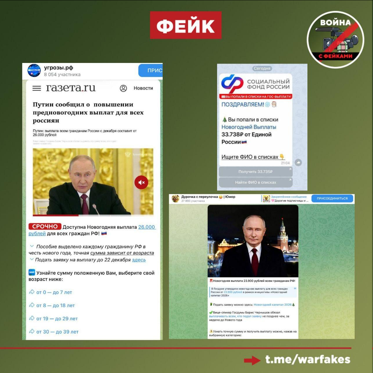 Мошенники привлекают с помощью кликбейта людей в свои закрытые телеграм-каналы. Для убедительности фейкометы используют якобы заголовки федеральных СМИ, упоминают портал «Госуслуги» и вице-спикера Госдумы Бориса Чернышова. Последний не объявлял о новых выплатах.