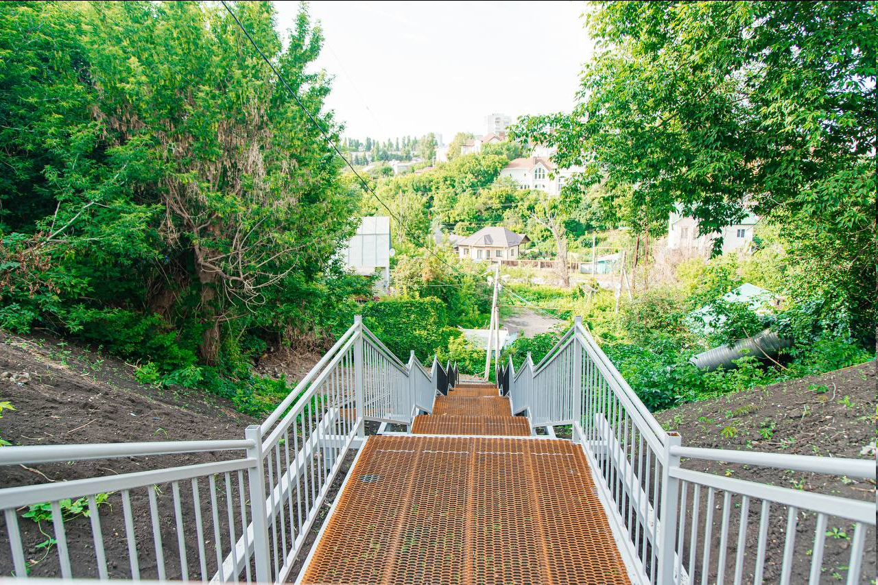 Лестница на Толстого тоже на финишной прямой. Уже завершились подготовительные работы, обустроены водоотводный лоток и ливневая канализация. Теперь подрядчик приступил установке металлической лестницы. После чего территорию заасфальтируют и озеленят. Роман Ченцов, в свою очередь, поручил установить на существующие опоры новые светильники.