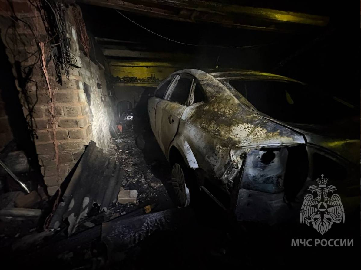 Пожарные расчёты выехали на место в 1:52. Пламя уничтожило сгораемые конструкции гаража по всей площади и сгораемые узлы и агрегаты автомобиля по всей площади. Пострадавших нет, сообщает МЧС Липецкой области.