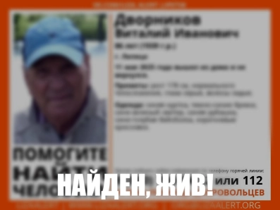 Также ранее поисковики сообщили, что пропавшего 11 мая 86-летнего Виталия Дворникова удалось найти живым.