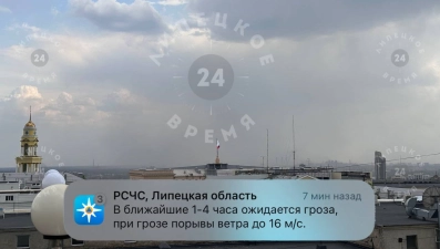 Гроза в регионе ожидается в ближайшие 1-4 часа.