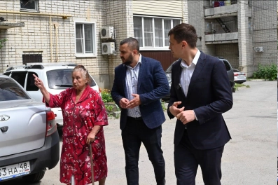 С жильцами пострадавших от атаки БПЛА квартир пообщался и.о. мэра Ельца Вячеслав Жабин.