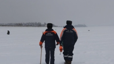 Инспекторы измеряют толщину льда и проводят беседы с рыбаками.
