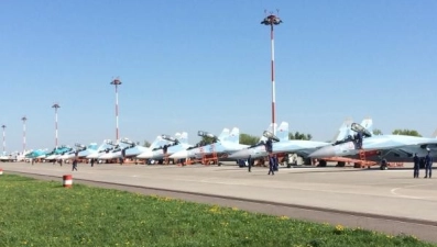 33 летных экипажа Липецкого авиацентра взлетели в эти минуты, чтобы отправиться в Москву и принять участие в Параде Победы над Красной площадью. Знаменитое "тактическое крыло" липчан, состоящее из 10 боевых истребителей - Су-34, Су-35С и Су30, - один за одним первыми поднялись в воздух.
